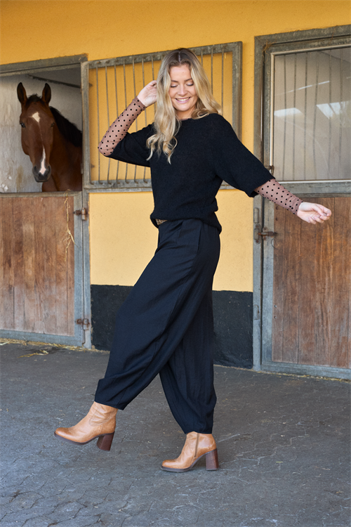 Til en afslappet hverdagsstil kan den med fordel styles med et par lyse jeans. Ønsker du et mere feminint twist, kan du style trøjen med en midi-nederdel i satin eller plissé, som skaber en flot kontrast til strikken.
