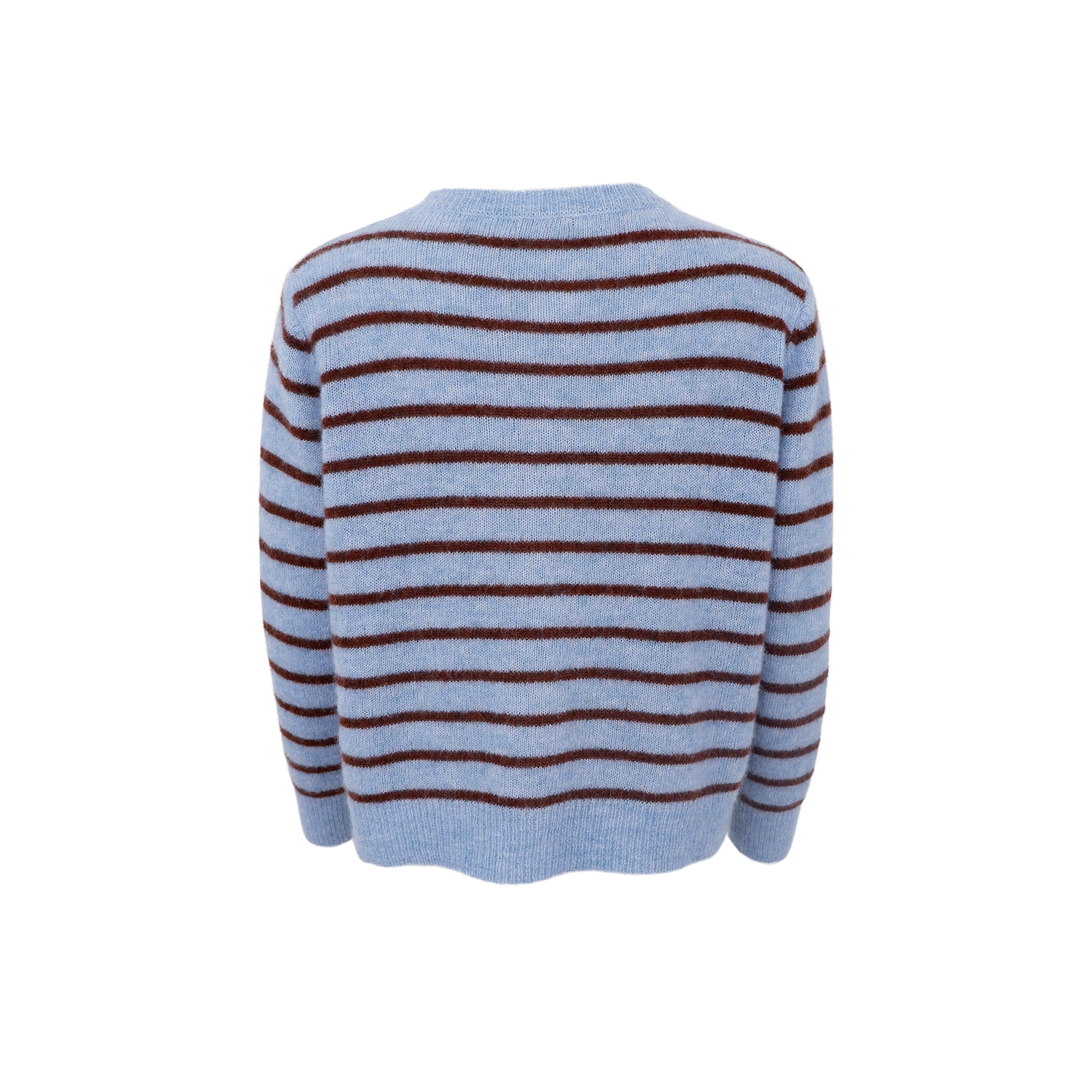 Fremstillet af en lækker uldblanding, føles den blød mod huden. Cardiganen er i en blå nuance med klassiske striber i en brun nuance samt knappelukning. Den har en klassisk rund hals, som giver et rent og sofistikeret look, samtidig med at den fremhæver décolleté på en elegant måde.