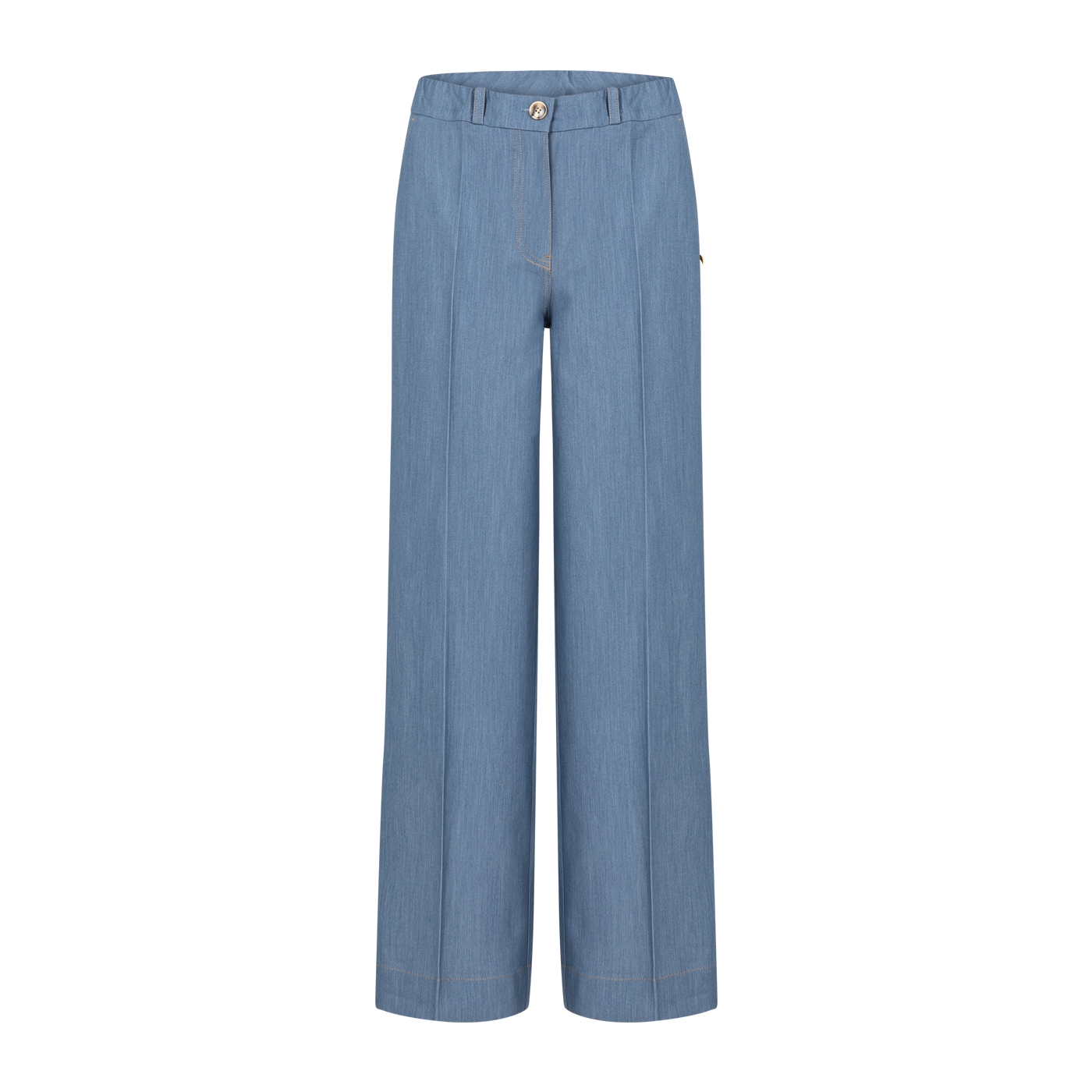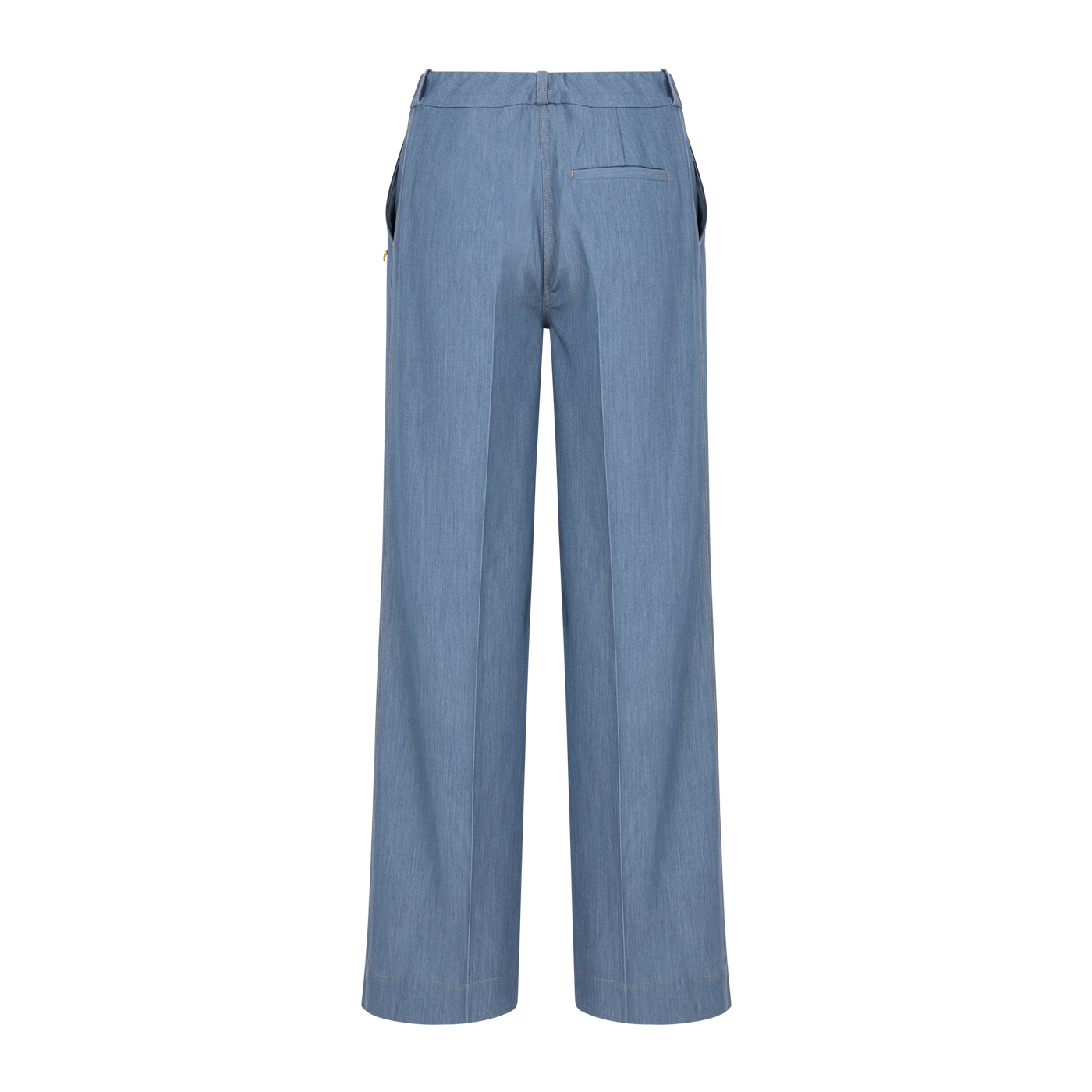 Disse lyseblå bukser har et cool og moderne look med brede ben, der giver en afslappet pasform og en flot silhuet. De synlige stikninger langs benene tilføjer et råt og gennemført udtryk, som giver bukserne lidt ekstra kant. Den faste talje med bæltestropper samt lukning med knap og lynlås gør dem nemme at style og behagelige at have på – både til hverdag og mere pæne outfits.