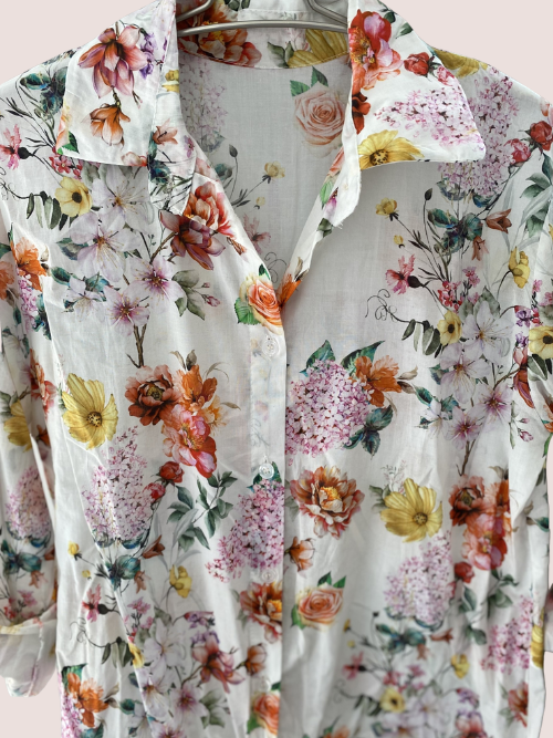 Lækker skjorte fra Amaze Cph med det fineste blomsterprint i friske farver. Skjorten har klassisk kraveflipper og knaplukning samt ekstra længde bagpå. Ærmerne kan smøges op, så outfittet bliver mere afslappet. Skjorten er behagelig mod huden samtidig er den let og luftig.