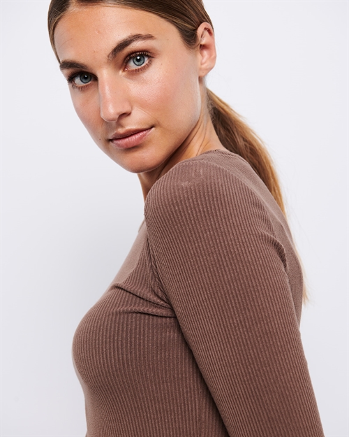 Lisa er en tætsiddende langærmet t-shirt med bådudskæring og en flatterende pasform. Den er fremstillet i en superblød viskosekvalitet med stræk, som føles behagelig mod huden og giver stor bevægelsesfrihed. Den kropsnære silhuet gør den ideel både som basislag under strik og jakker, eller alene for et enkelt og stilrent look. En alsidig garderobefavorit der fungerer året rundt – uanset farve.