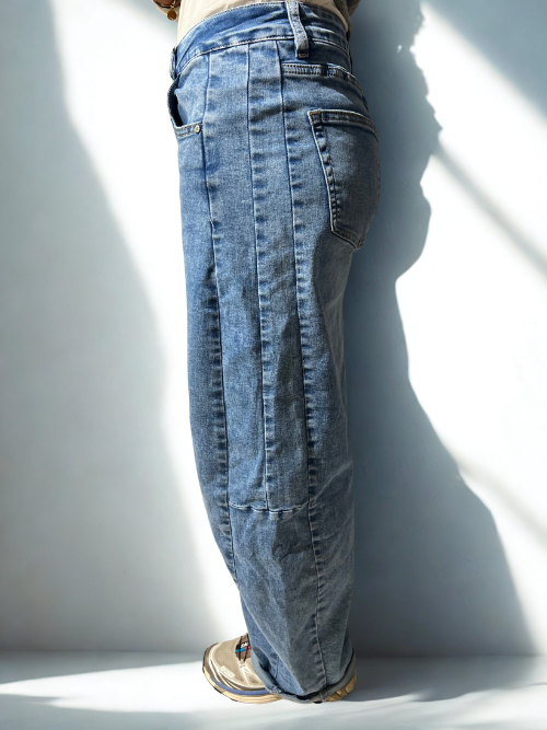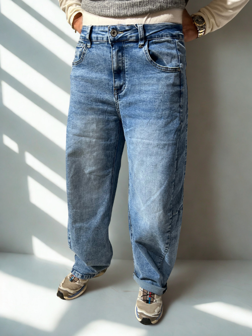 Moderne lyse jeans i et afslappet, løst fit, der er yderst komfortable uden at gå på kompromis med stil. Disse bukser har et casual og trendy udseende, hvilket gør dem ideelle til hverdagsbrug. Deres rummelige pasform sikrer bevægelsesfrihed, samtidig med at de skaber en afslappet og stilfuld look. Perfekte til at style op eller ned, afhængigt af lejligheden.