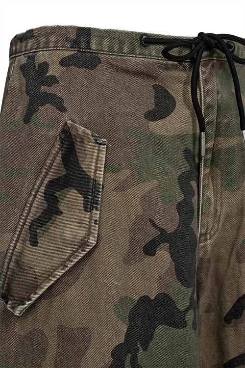 Penny er dine nye go-to bukser til et afslappet, men cool look. De har en løs pasform med mid waist og justerbare snører ved anklerne, så du nemt kan tilpasse silhuetten. Det vaskede camouflageprint giver et råt, worn-in udtryk – perfekt til off-duty styling med kant.