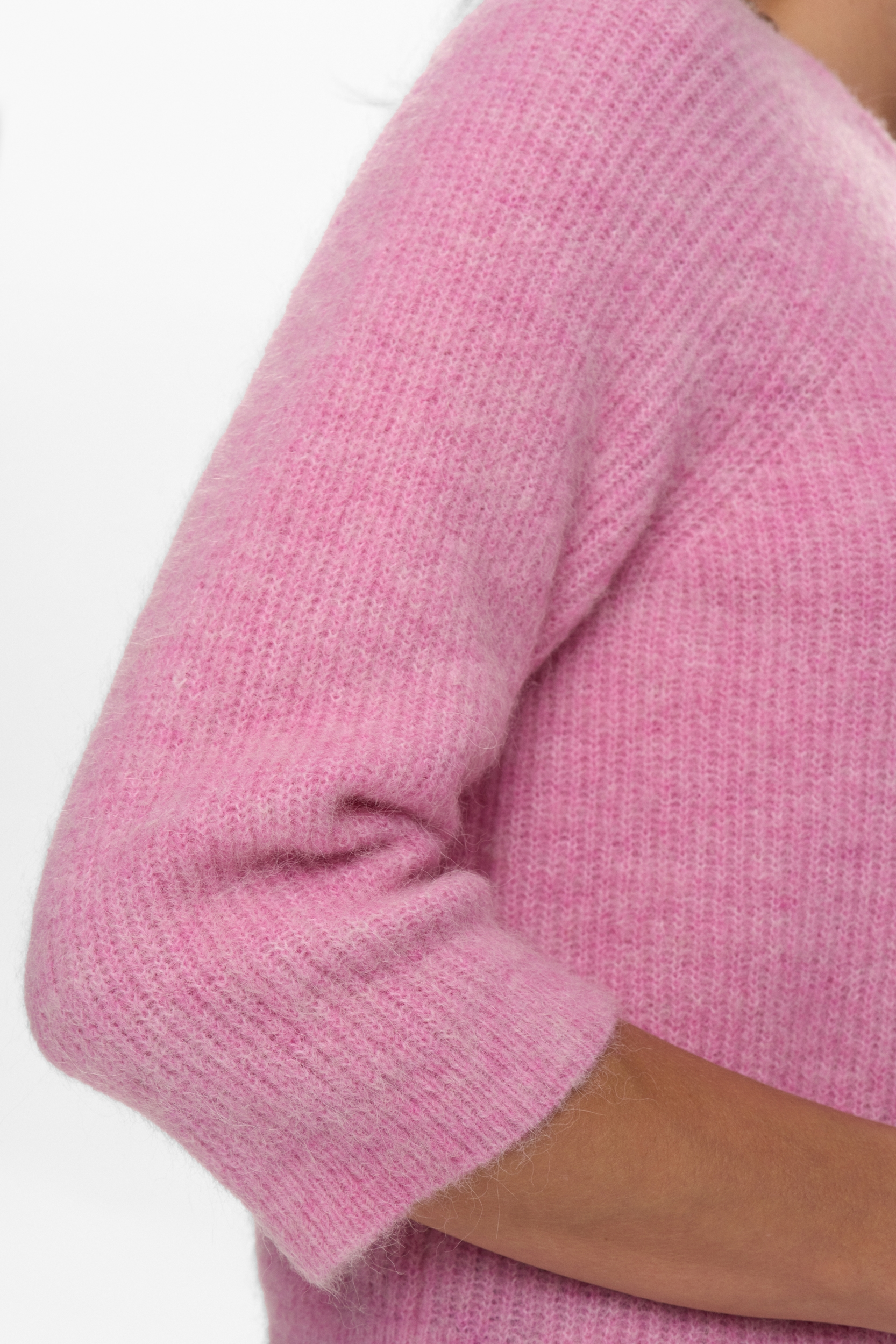 Brug strikken med et par jeans og en støvle for et elegant hverdagslook. Den fine farve gør den oplagt til at kombinere med både neutrale nuancer og mere farverige styles.