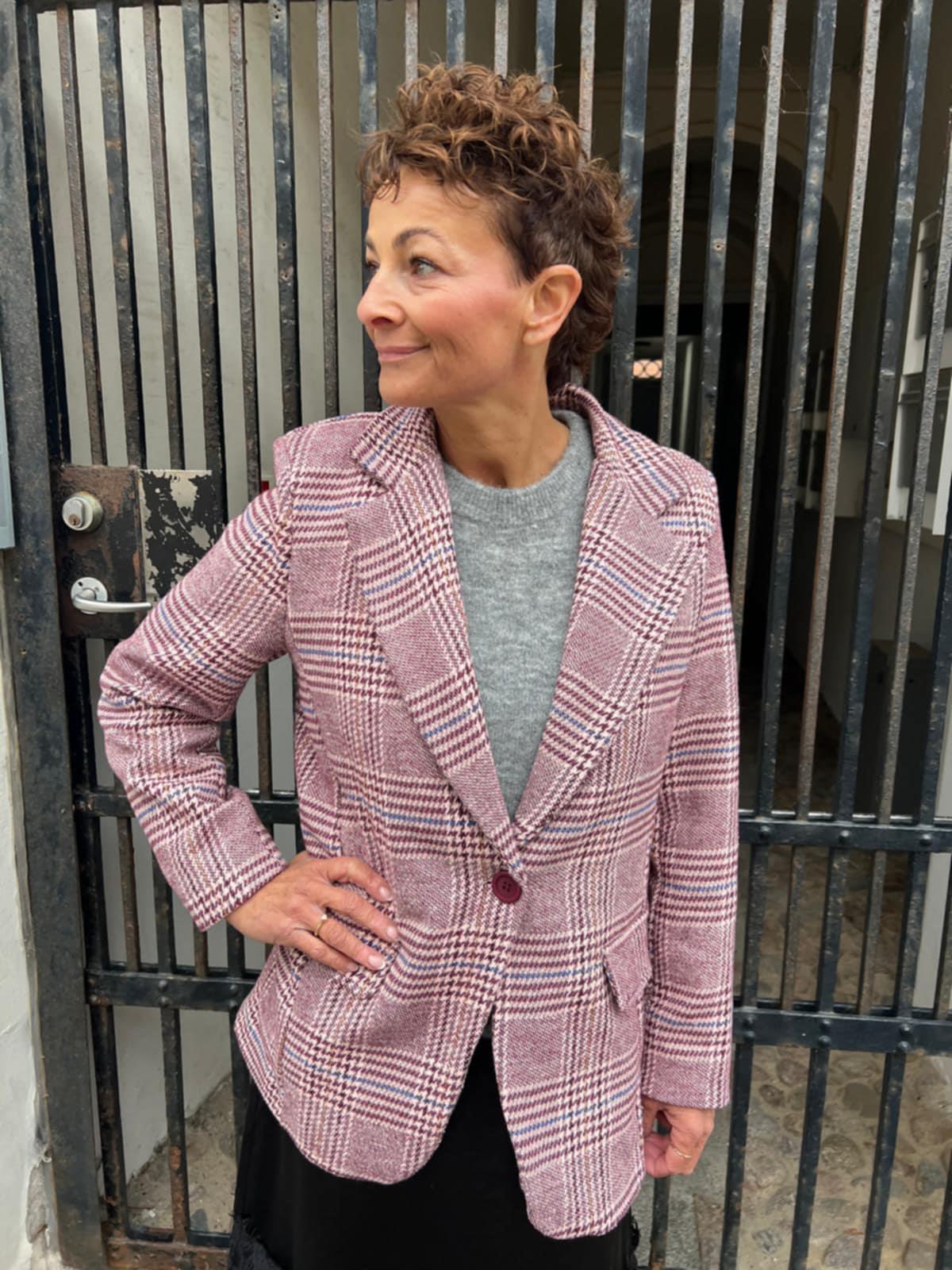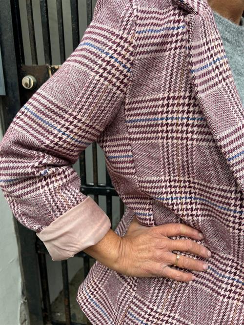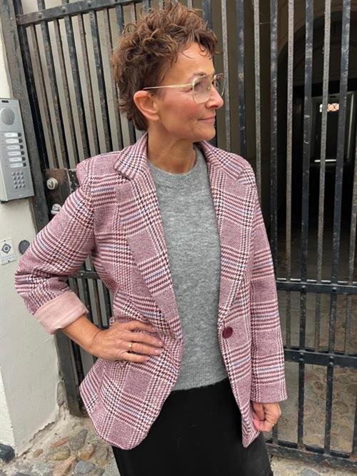 Denne smarte blazer fra Amaze Cph er designet med det smukkeste ternede mønster. Den er i skønne vinrøde nuancer med markante blå striber, hvilket skaber et flot farvespil. Blazeren har skulderpuder, en klassisk knaplukning og snydelommer, hvilket giver et tidløst og sofistikeret look. Perfekt til både hverdag og mere formelle anledninger.